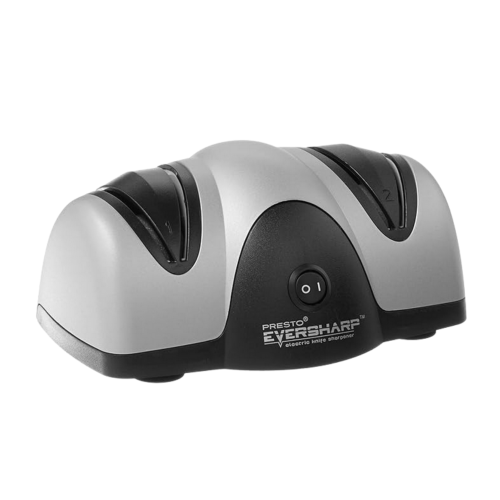 The Presto electric knife sharpener provides an easy, automatic way to sharpen most non-serrated kitchen and sport knives to a razor sharp edge. With a special two stage system, it precision grinds a perfect sharpening angle, then fine hones and polishes the edge for professional results at home, anytime.